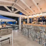 Los huéspedes pueden descansar en el bar de jardín del hotel Akti Belvedere Color & Essence Skala Rachoni con su bebida favorita.